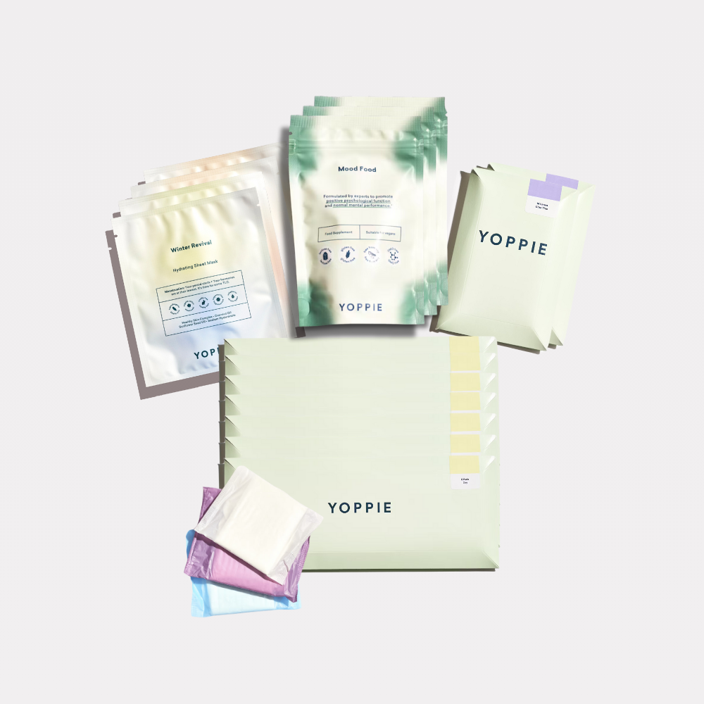 Take care of yourself for a full three months with everything you need in one complete package. Your bundle includes enough pads and liners to keep you comfortably protected (with some extras, because we know every cycle is unique), a variety of our cycle-syncing face masks for targeted skincare through each phase, plus a 3-month supply of our balancing Mood Food Supplement to help regulate hormonal mood swings and promote emotional balance.