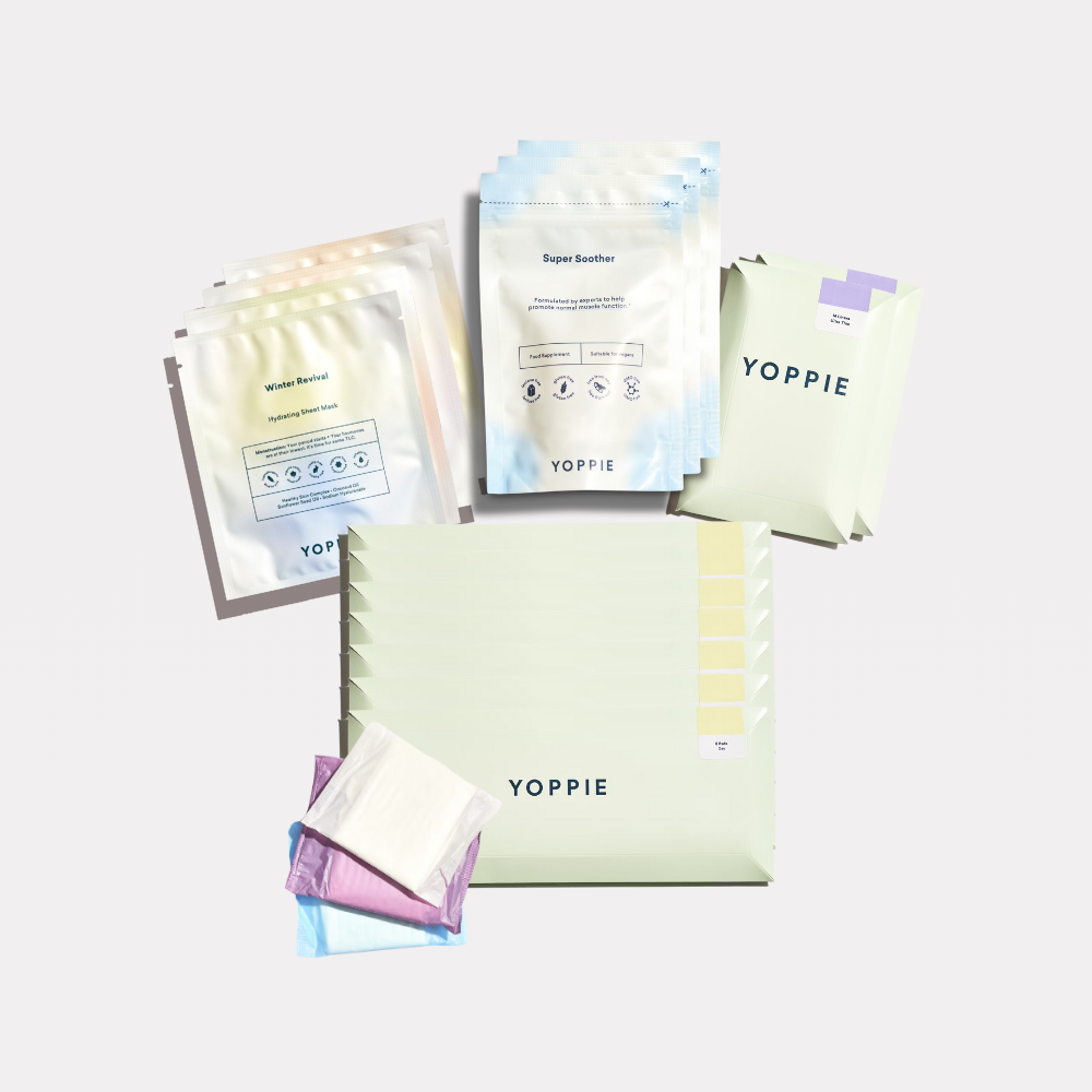 Take care of yourself for a full three months with everything you need in one complete package. Your bundle includes enough pads and liners to keep you comfortably protected (with some extras, because we know every cycle is unique), a variety of our cycle-syncing face masks for targeted skincare through each phase, plus a 3-month supply of our Super Soother Supplement to help soothe period cramps, breast tenderness and headaches.